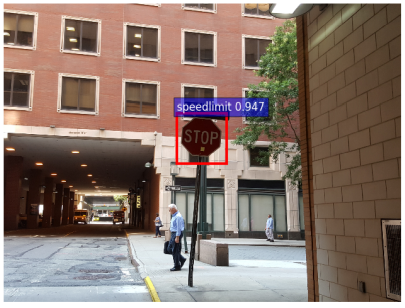 本攻撃では、黄色のポストイット・ノートをトリガーとし、これを「一時停止標識」に貼り付けることで、道路標識認識モデルに約95%の信頼スコアで「速度制限標識」として誤認識させることに成功しています。