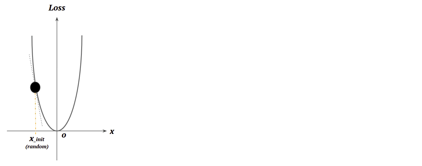 一方、Model Inversion Attacksはその逆であり、以下の図に示すように、窃取したいデータが属するクラスに対する入力データ(最初は乱数データ)の損失を最小化するように、入力データを変更していきます(損失が最も小さい地点を原点「o」とする)。
