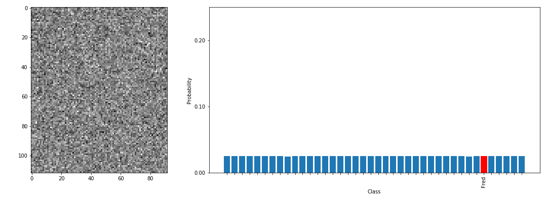 以下の図は、Model Inversion Attacksで顔認識モデルを攻撃し、Fredさんのクラスのデータを再構成する様子を表しています。左に示す画像が攻撃者が用いる乱数データであり、徐々にFredさんクラスのデータに変化していく様子が分かります(実際のFredさんの写真はページ後半に掲載しています)。