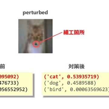 特に上記2と4の結果から、(CNNに入力する)前処理で細工画像を拒否することは困難であるため、CNNにとっては非常に厄介な攻撃であると言えます。また、今回の検証ではほぼランダムなクラスに誤分類されましたが、仮に意図したクラスに誤分類させる手法が確立された場合、物体認識系のシステムにとって大きな脅威になります。
