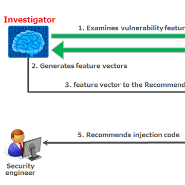 なお、本システムでは、過去の膨大な脆弱性検査結果を基に、脆弱性の様々な発現パターンをベクトル化し、機械学習を用いて学習しています。そして、新たに脆弱性の可能性のある挙動を検知した場合、学習結果に基づいて最適な検査文字列をレコメンドする仕組みになっています。
