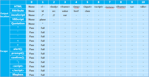 “ : Fail ‘ : Fail ` : Pass < : Pass > : Pass alert(); : Pass prompt();: Pass confirm(): Pass alert``; : Pass <script> : Fail Msgbox();: Pass |
