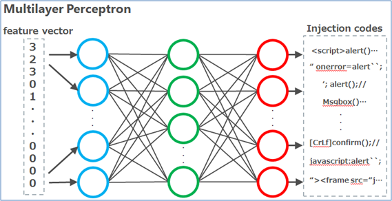 By the way, MLP is a supervised learning model, so it needs to pre-learn. In other words, we need to prepare various vulnerability patterns as learning data. For this blog, we used the data from WAVSEP's XSS case (about 1,300 patterns) which we manually collected for the learning.