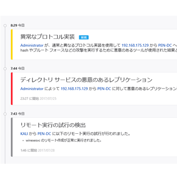 ATAをインストールするとブラウザで設定や検出内容を確認することができます。検出されたイベントは「タイムライン」に時系列で表示されます。