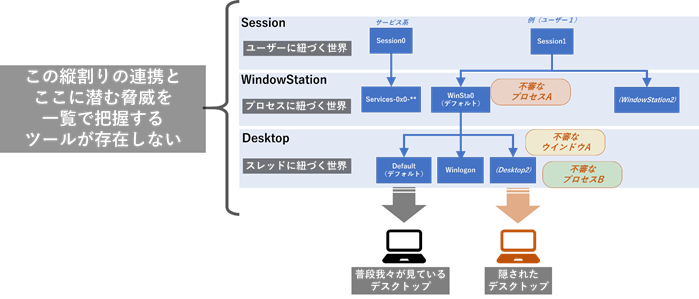 図 16 WindowStationとDesktopをまたぐ脅威を容易に把握する手段がない現状