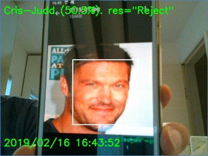一方、学習していない人物(Brian Austin Green氏)の場合はReject(認証失敗)を返します。また、認識精度も低くなっていることが分かります。