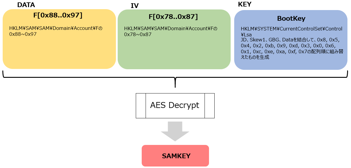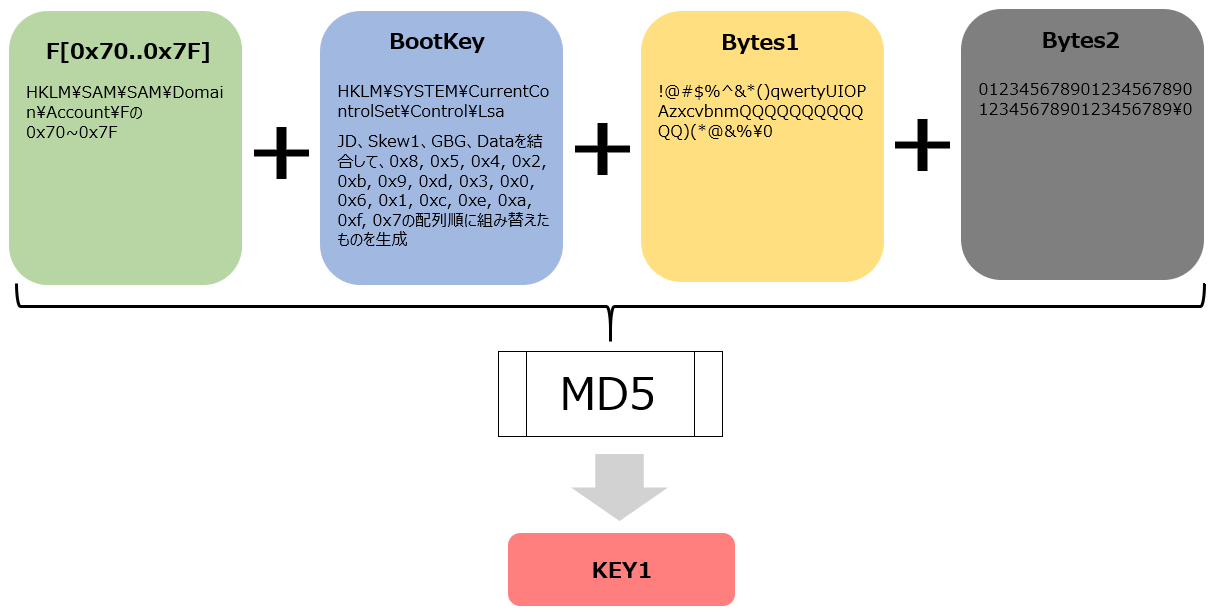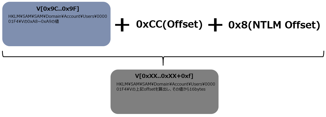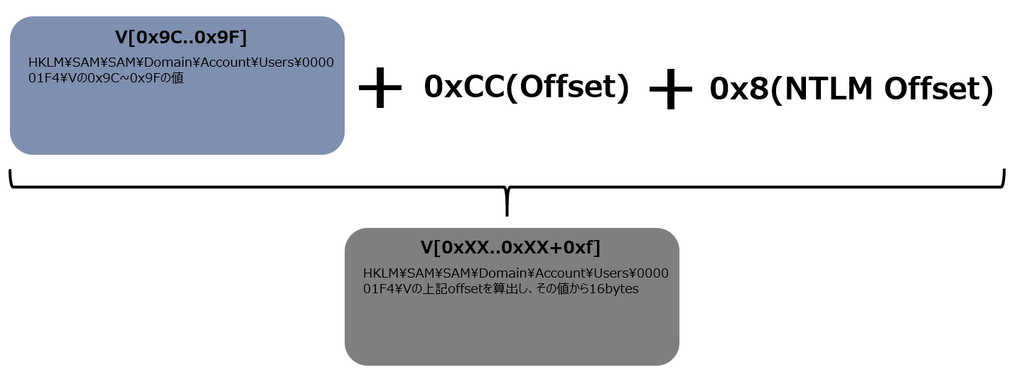 パスワードのHashが保存されているSAMにアクセスできたので、これでもうあとは探すだけですが、実はパスワードのHashはそのまま保存されているわけではありません。