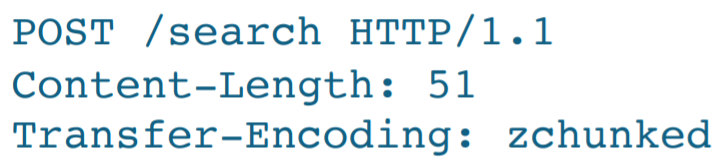 図2(氏の発表スライドより)Transfer-Encodingが「zchunked」となっているのは意図的です。これを一部のソフトウェアは正常なchunkedリクエストと解釈する一方、Content-Lengthにより終端を決めるソフトウェアもあります。