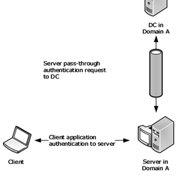 NETLOGONサービスは、クライアントがあるドメインに参加するファイルサーバなどへアクセスした場合に、当該サーバからドメインコントローラに対する認証をつかさどるサービスで、サーバとドメインコントローラ間の通信はサーバのコンピュータアカウントのパスワードで暗号化されています。クライアントからの認証要求に対して、サーバがドメインコントローラへ問い合わせを行い、その認証結果が暗号化された通信を介して、サーバへ通知されます。この認証方式はパススルー認証と呼ばれています。