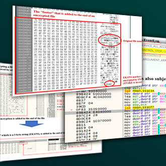 Fig. 18 - Comparing before and after SNAKE. "EKANS" marker added at the end of the encrypted fileEncrypted file is shown in below, and you can determine if it is a SNAKE encrypted file by looking at the last 5 bytes of the file.