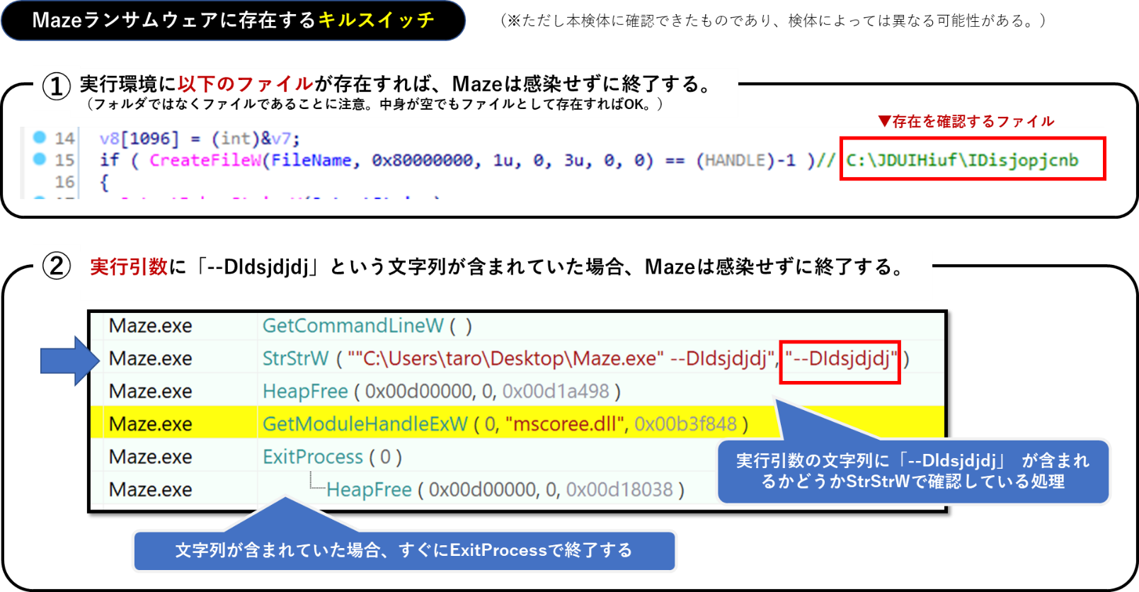 Mazeランサムウェアには感染を停止させる「キルスイッチ」が2つ存在します。