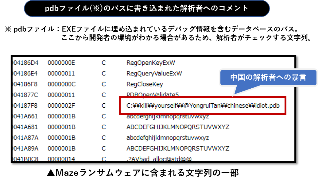 MazeランサムウェアはEXEをデバッグした際にしか目にすることのないデバッグ文字列に特定のマルウェア解析者らへ向けた挑発的なメッセージを隠しています。