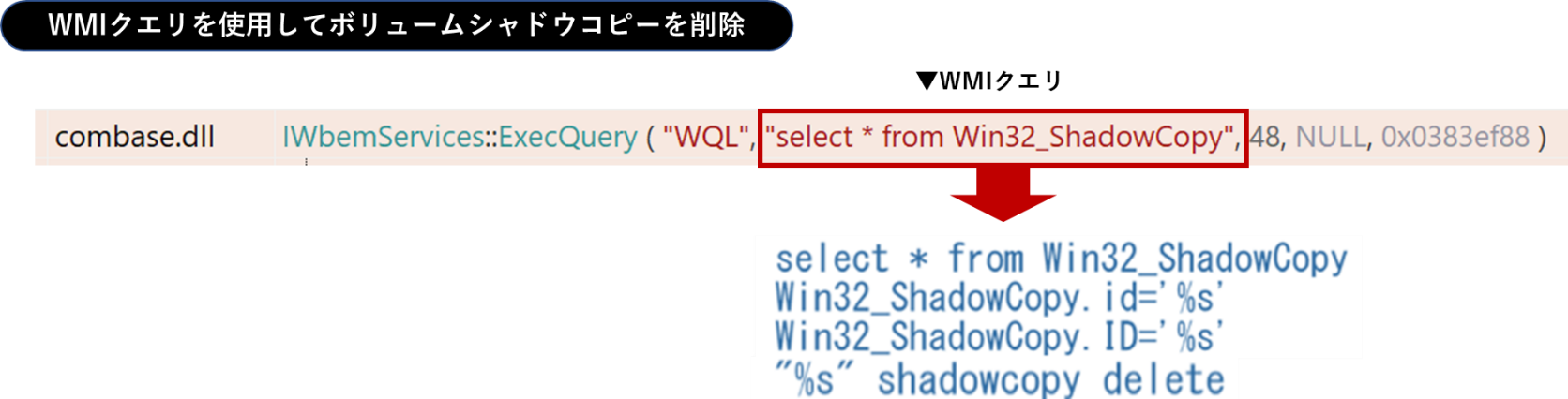 Mazeランサムウェアのメインモジュールはその後、WMIクエリを使用してボリュームシャドウコピーを削除します。これによってシステムの復元によるデータ復旧が行えなくなります。