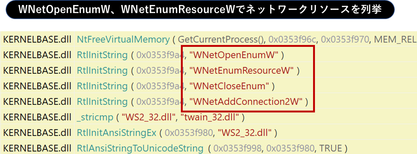 また、WNetEnumResourceなどでネットワークリソースを列挙し、ネットワーク共有なども暗号化の対象となります。