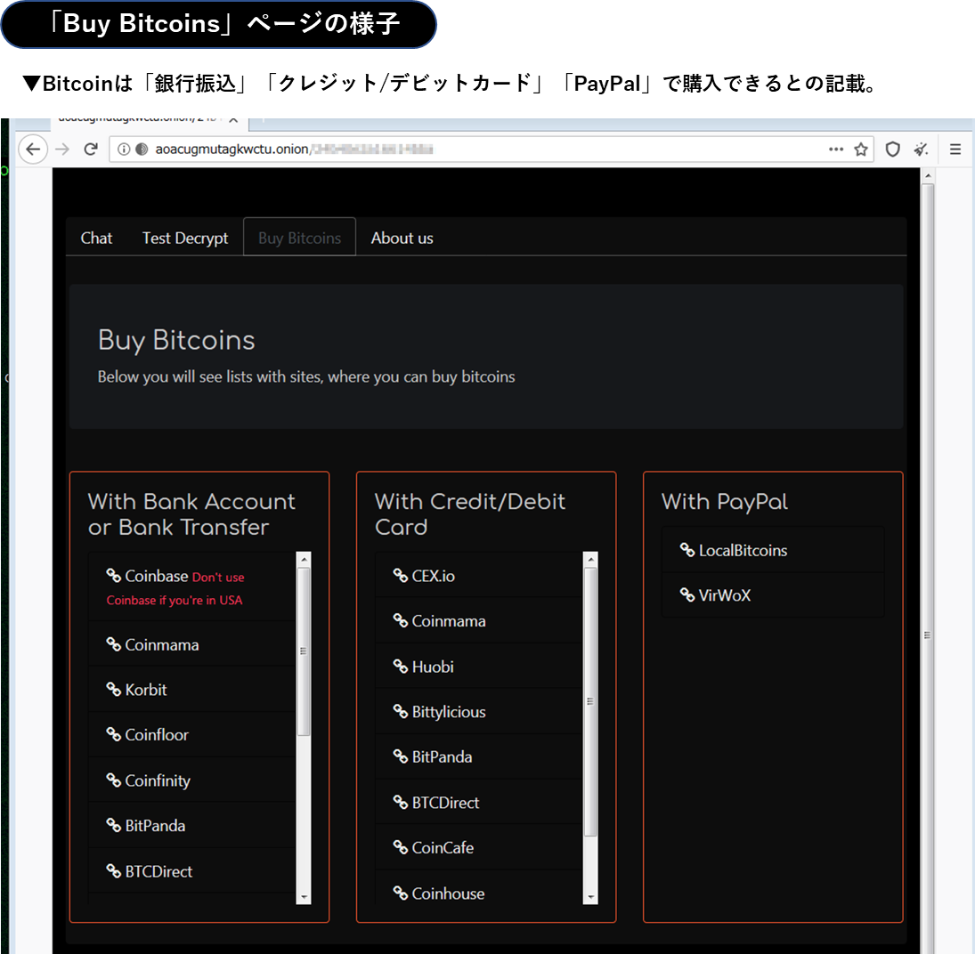 図55 脅迫文のリンク先にアクセスすると表示されるWebサイト