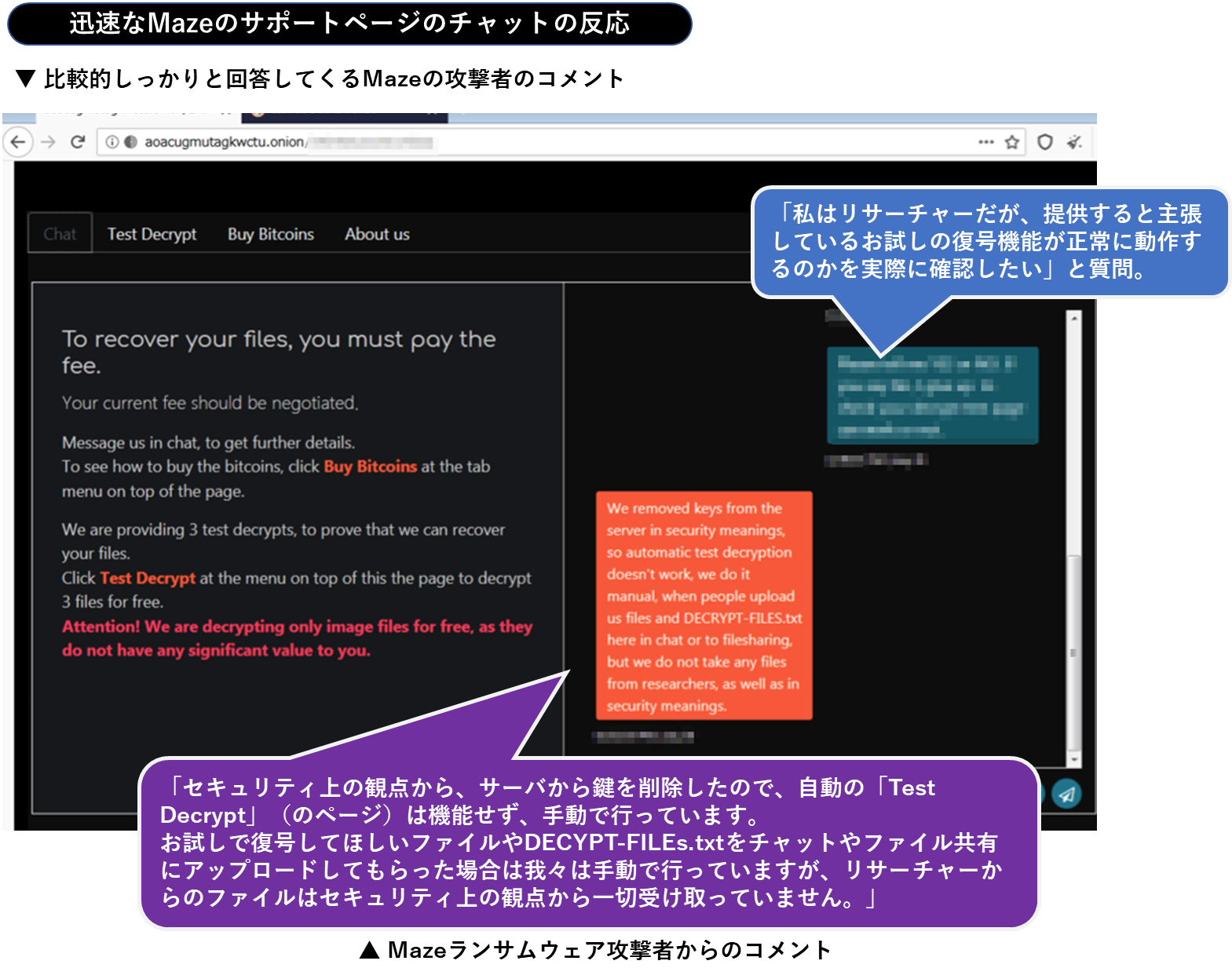 Mazeランサムウェア攻撃者側の迅速なチャットサポート
