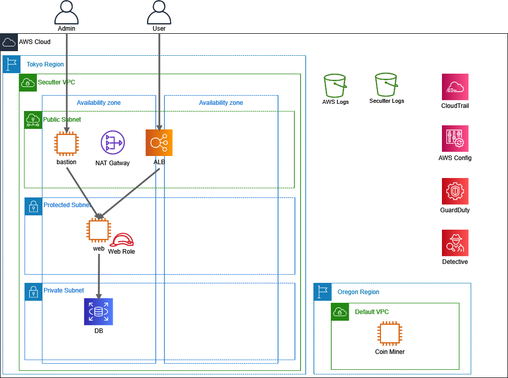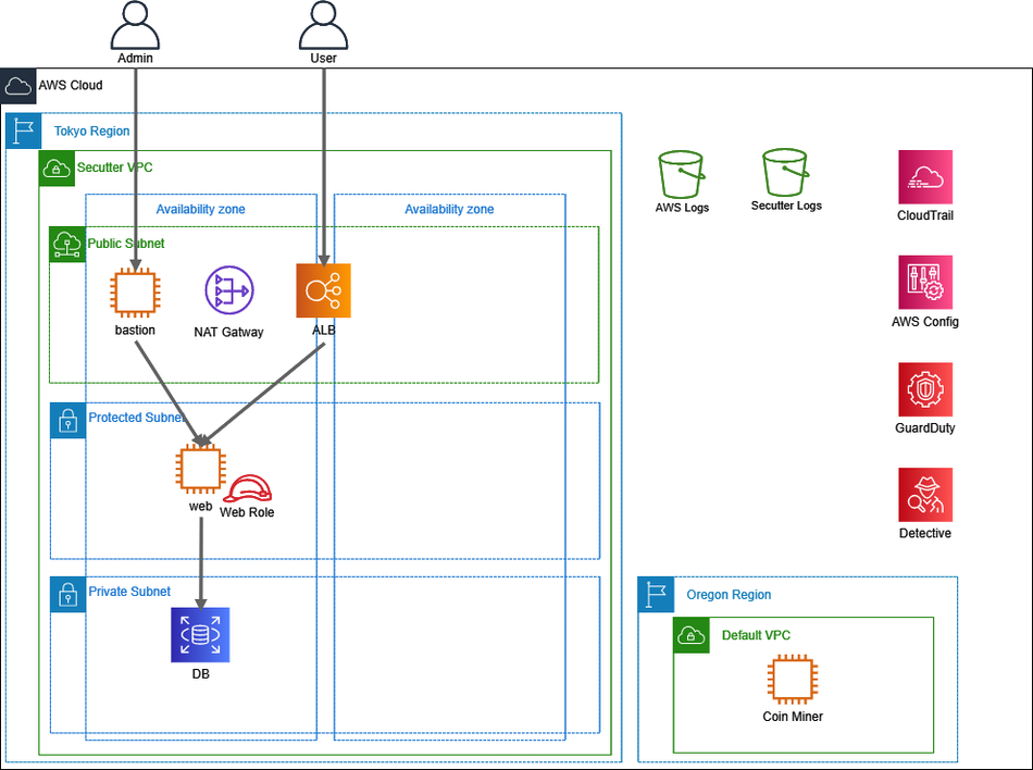 このインシデントはWAFの設定ミスにより存在したSSRFの脆弱性を攻撃され、S3バケットに格納されていた情報が漏洩してしまい話題となったものです。攻撃シナリオの最初の部分は、まさにこちらのインシデントを参考にして作成しています。それ以外にはインシデント発覚につながった「EC2インスタンス作成による仮想通貨のマインニング」も現実でよく起こるありがちなインシデント事例の一つとして組み込んでいます。