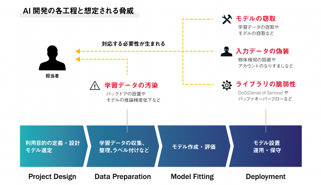 近年、ディープラーニング技術の発展により、顔認証や防犯カメラ、そして自動運転技術など、ディープラーニングを使用したシステムが普及しています。その一方で、システムへの入力データを偽装することで、他人になりすまして顔認証を突破する攻撃(回避攻撃/敵対的サンプル攻撃)や、AIの学習データを汚染することでAIにバックドアを設置する攻撃(学習データ汚染)、また、AIの挙動を観察することでAIの学習データを窃取する攻撃(抽出攻撃)など、AI開発の各工程を狙った攻撃が盛んに研究されています。AI開発者がこれらの攻撃を理解せずにAIを開発した場合、重大なインシデントに繋がる可能性があります。