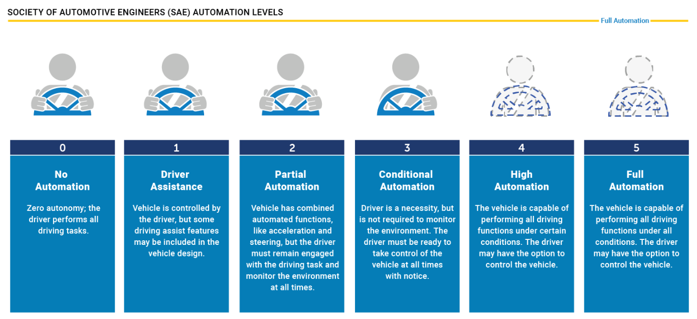 現在、自動運転車は、自動化の度合いに応じて幾つかのレベルが定義されています。