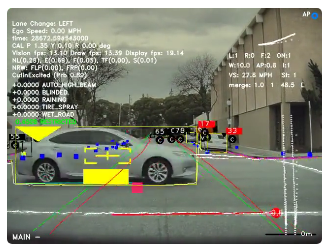 センサー類で収集した生データと、クラウドから取得したHD Mapをディープラーニング・モデルに入力し、ドライビングの環境情報(自動運転車の周囲環境の情報)を抽出します。この時、車両の位置情報の特定や、道路標識/路上の物体検出および認識、そして、認識された物体の意味付け(一時停止標識、道路を横断中の歩行者など)が行われます。