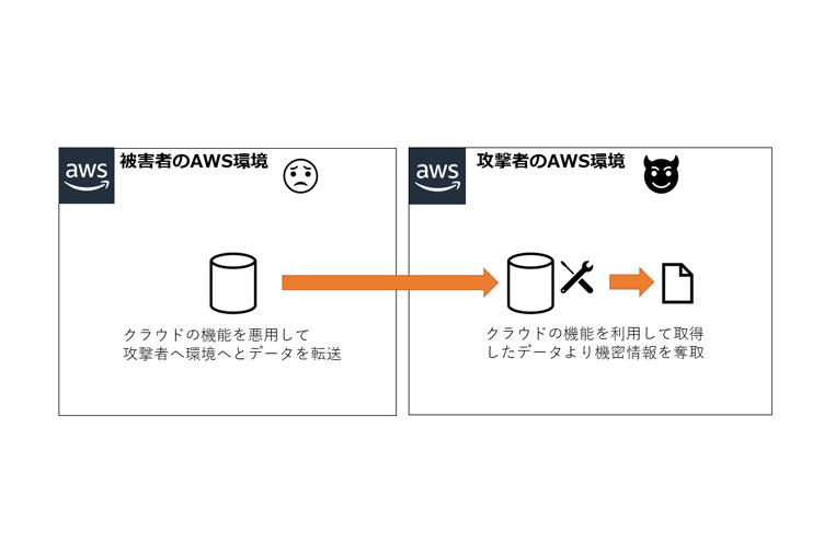 冒頭で記載した通り、クラウドプラットフォームでは提供されているサービスごとに、クロスアカウント間でデータの共有や転送を行う機能が存在しています。簡単に言えば攻撃者がその機能を悪用し、攻撃者が所有するクラウド環境側にデータを転送させることによってデータを奪取するというものです。また、サービス固有のデータを丸ごと転送することによって、攻撃者側の環境でクラウドプラットフォーム上の機能を利用して好きなように処理することができます。