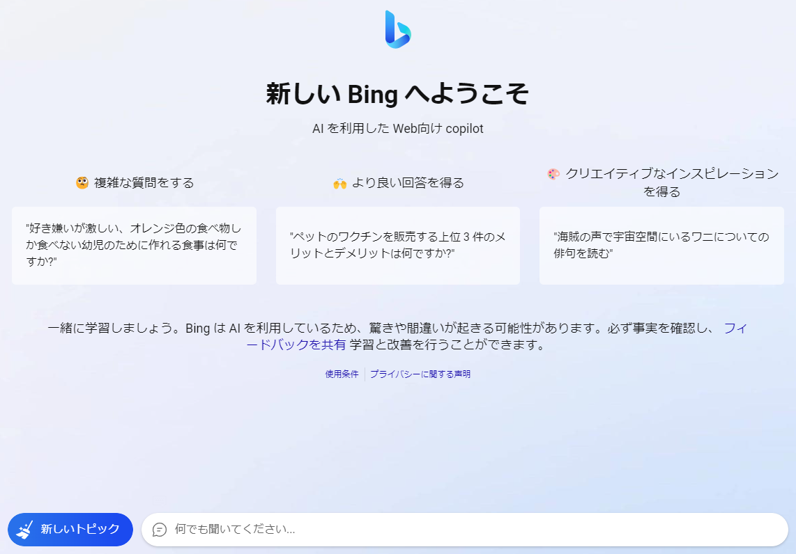 - Microsoft「New Bing(新しいBing)」