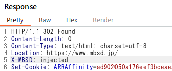 その結果、改行文字によるHTTPヘッダインジェクションが成功します。