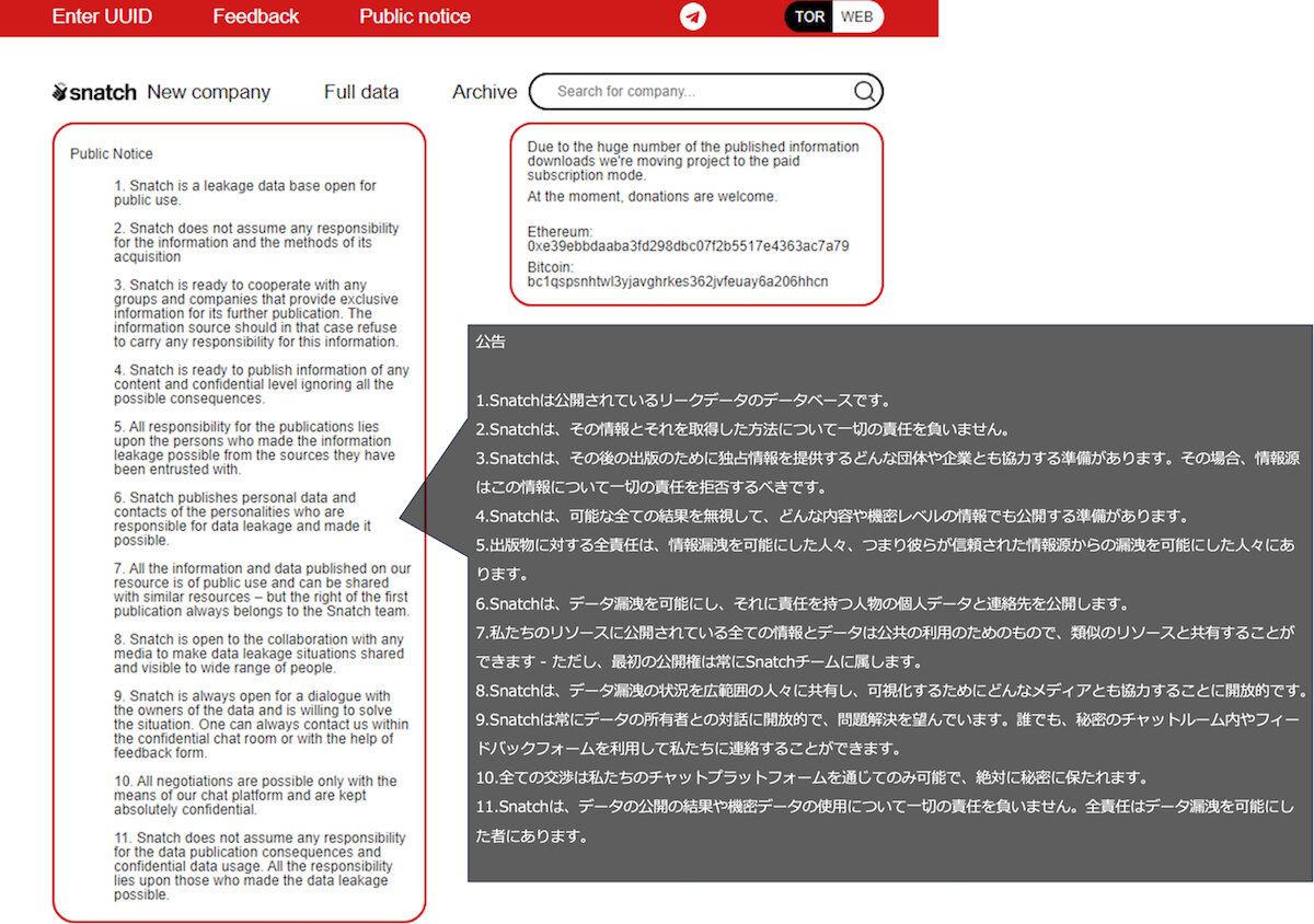 図 4 Snatchがリークサイト上に掲載した公告