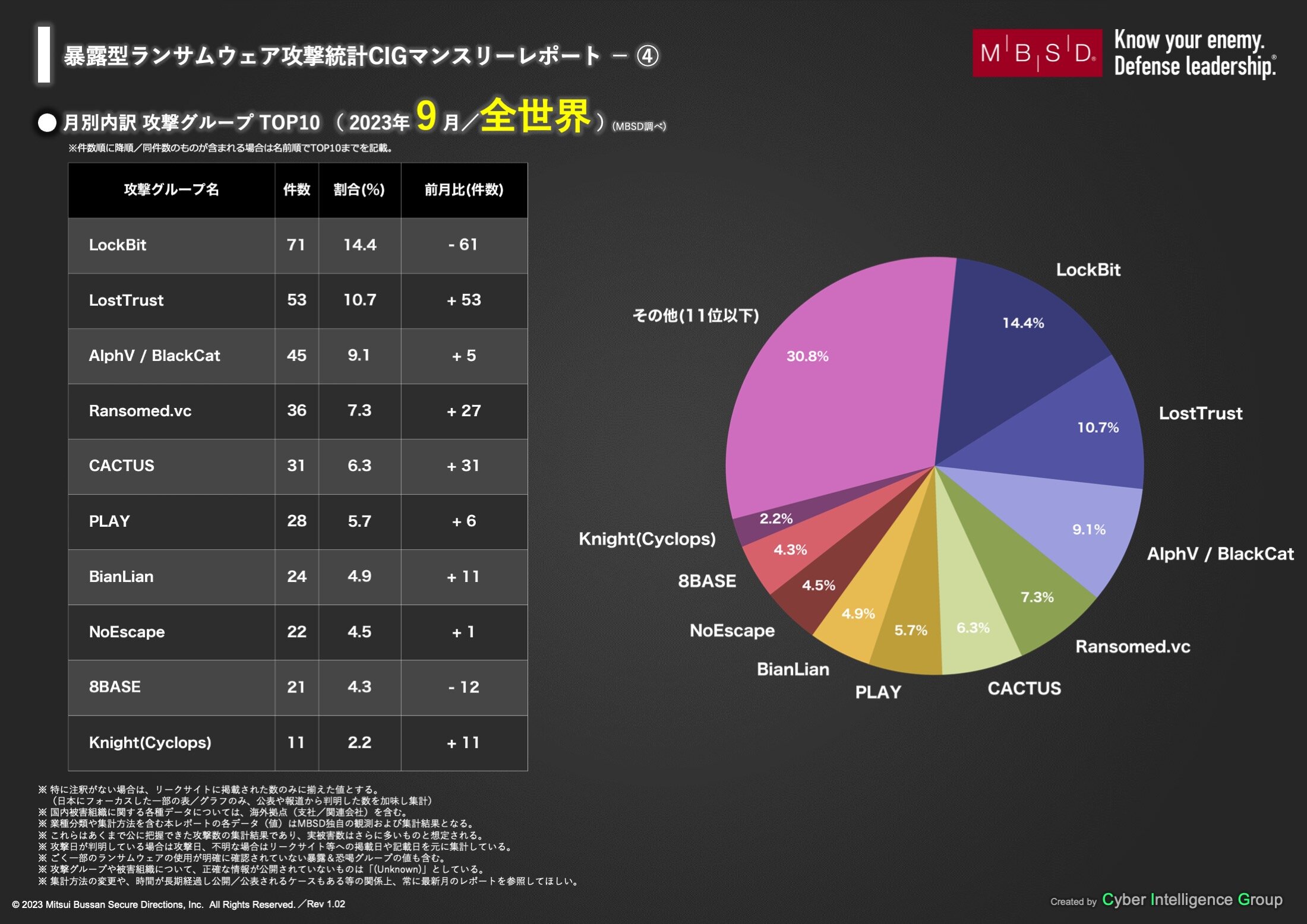 ■月別内訳 攻撃グループTOP10 (2023年9月)
