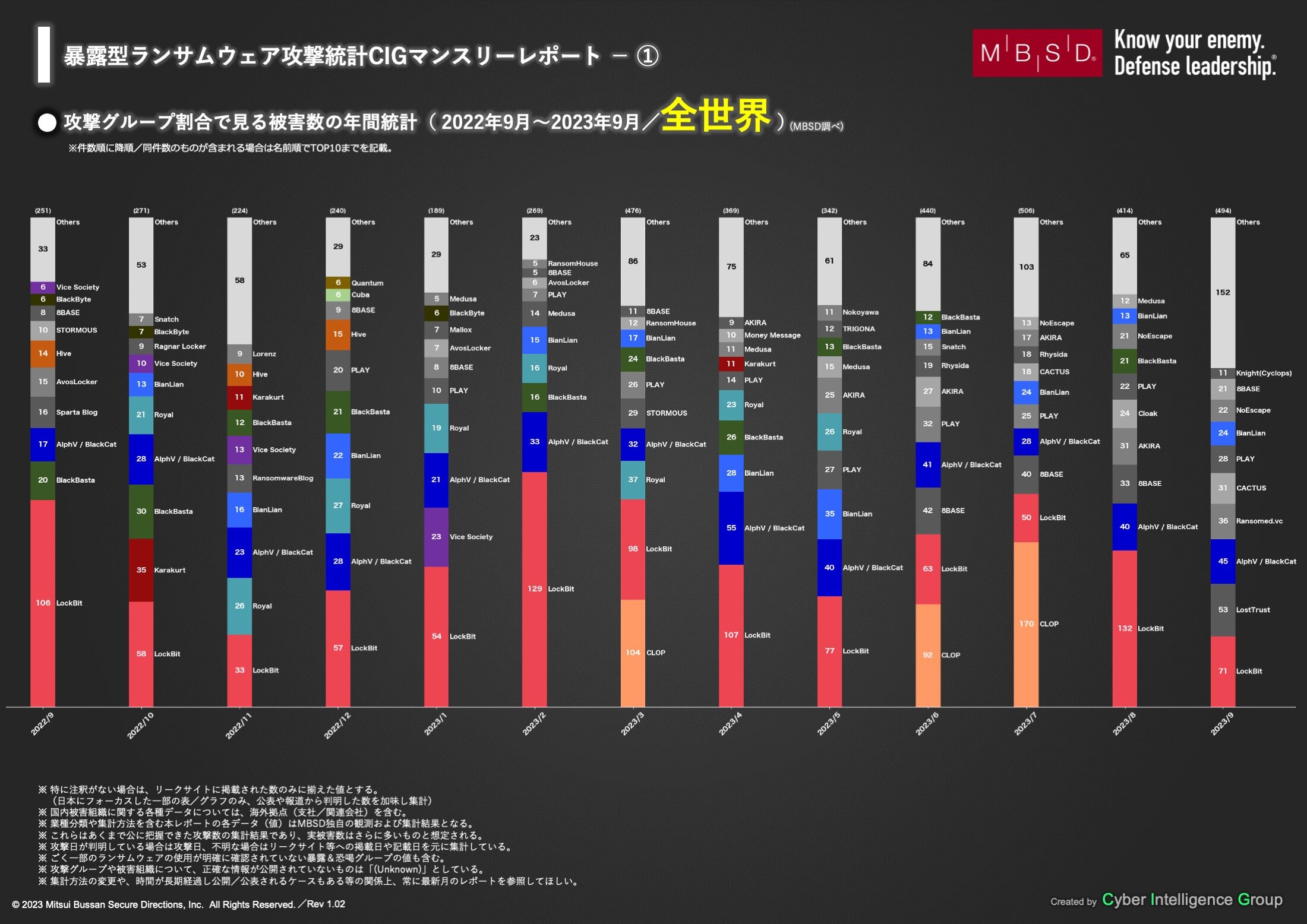 図1 攻撃グループ割合で見る被害数の年間統計( 2022年9月~2023年9月/全世界 )