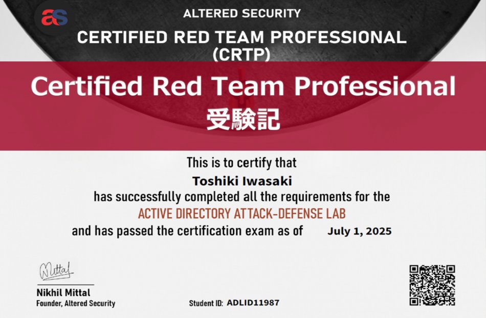 このブログでは以前に私が受験した、Altered Security社が提供する「Certified Red Team Professional (以下CRTP)」の受験記をお送りいたします。